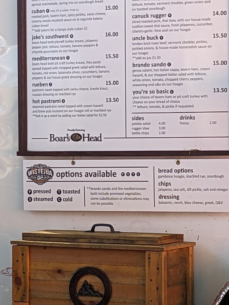 To wash it all down, Wisteria offers a refreshing "Fresca" to quench your thirst. Whether you're stopping by for a quick lunch or enjoying a leisurely meal with friends, the Wisteria Sandwich Shop Menu provides a wonderful variety of choices, ensuring that every visit is a satisfying experience.